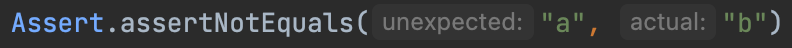 assertEquals의 앞에는 나오기 기대되는 값이 오며, 뒤에는 실제 테스트에서 나온 값이 온다. 예를 들어 테스트에서는 "b"가 나왔는데 나오기를 기대한 값은 "a" 라면 다음과 같이 작성된다. 만약 둘이 같다면 테스트가 통과되고 다르다면 테스트가 실패한다.
