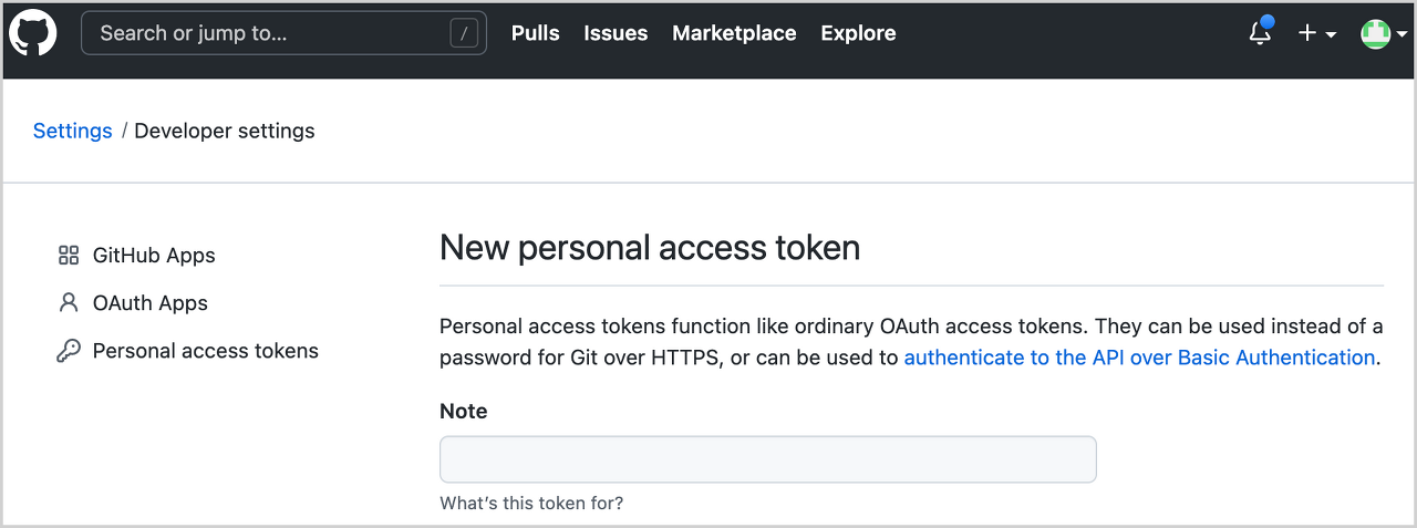 GitHub API를 사용하기 위해 자신의 계정으로 새로운 GitHub token을 생성한다.