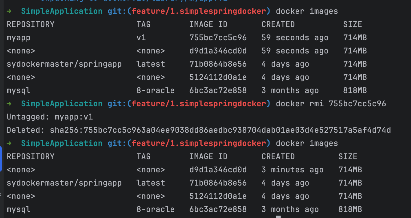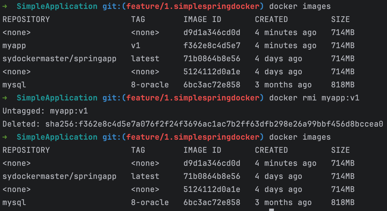 예를 들어 myapp:v1 이미지를 지우고 싶다면 다음과 같이 쓰면 된다.